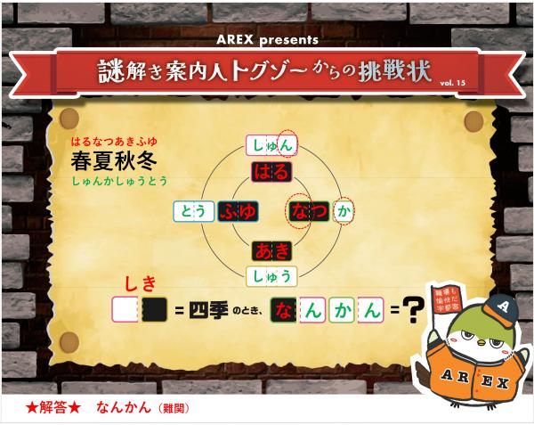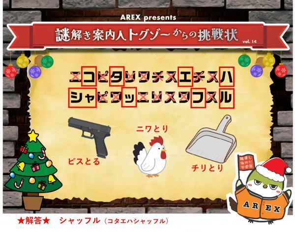 ※AREX presents「謎解き案内人トグゾーからの挑戦状」の解答は、「AREX Faces」の写真をご覧ください。 No13から掲載